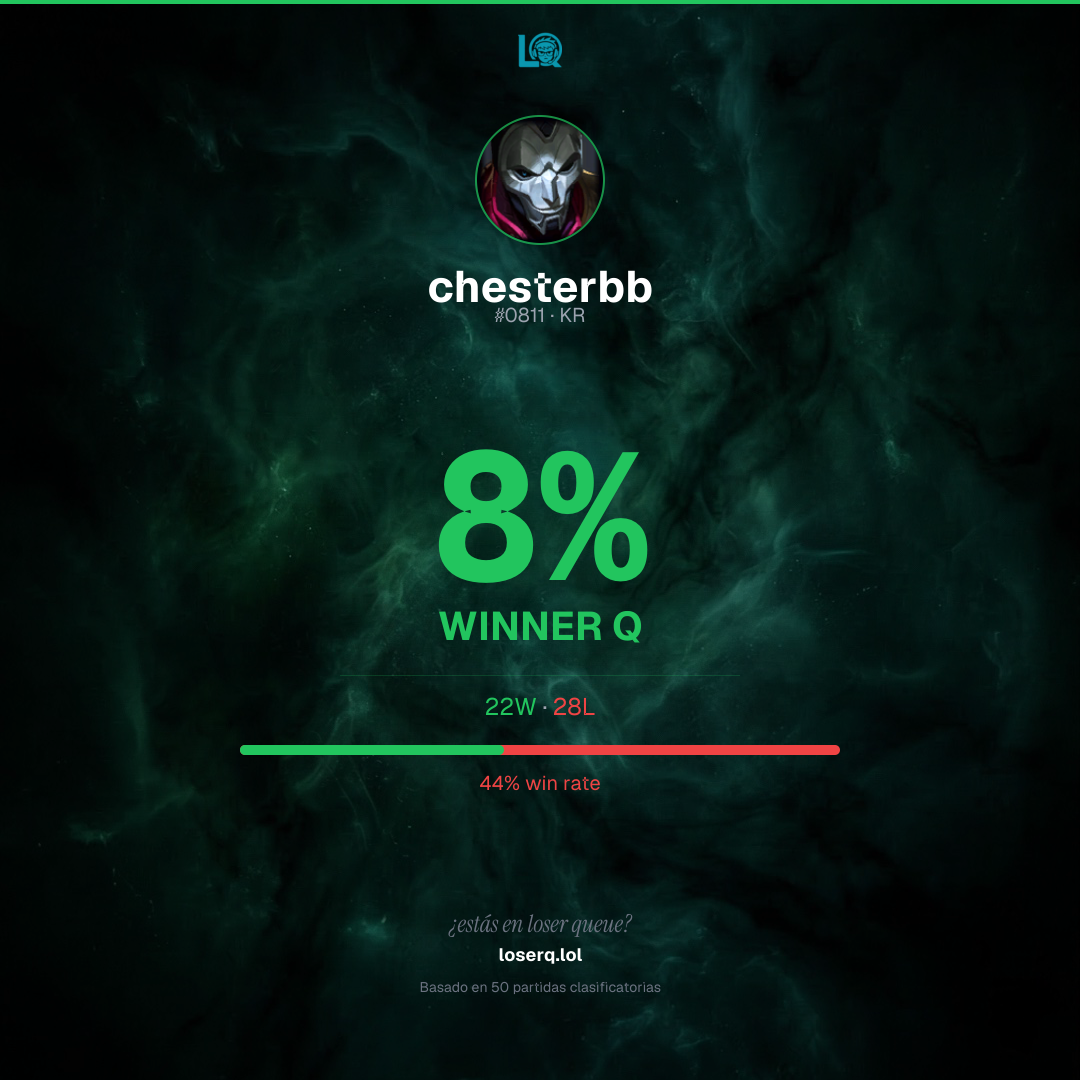 22 victorias, 28 derrotas — 44% de win rate. Ha sido una racha difícil.