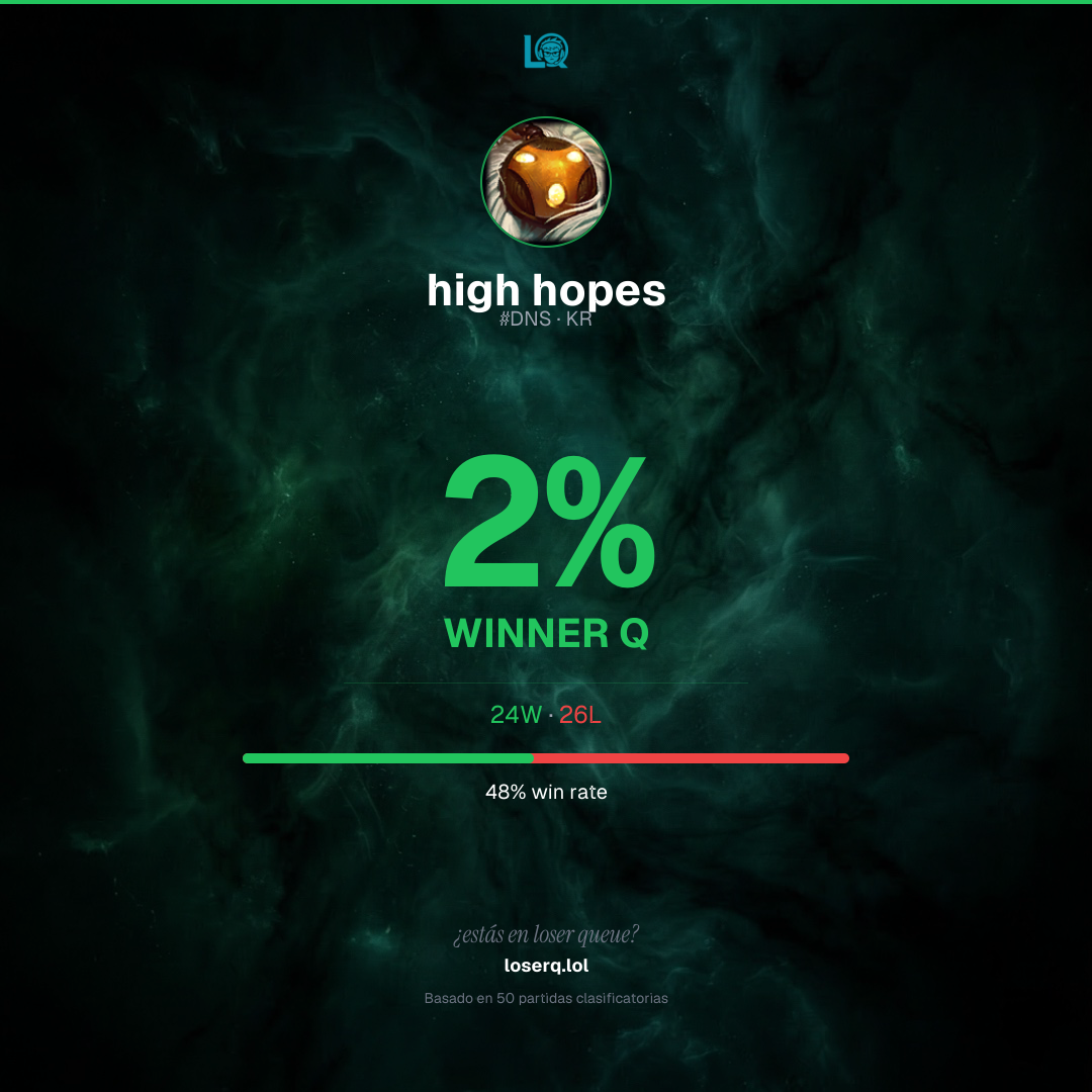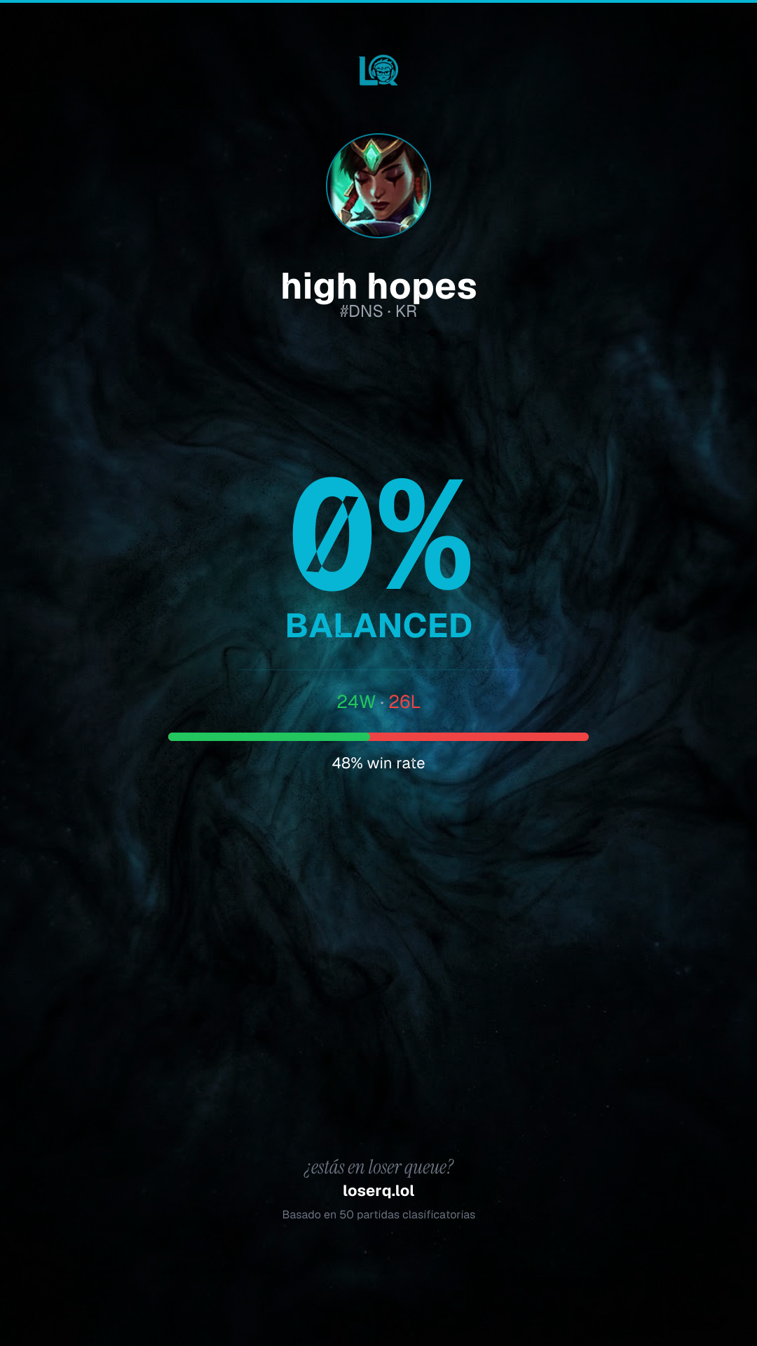 24 victorias, 26 derrotas — 48% de win rate.