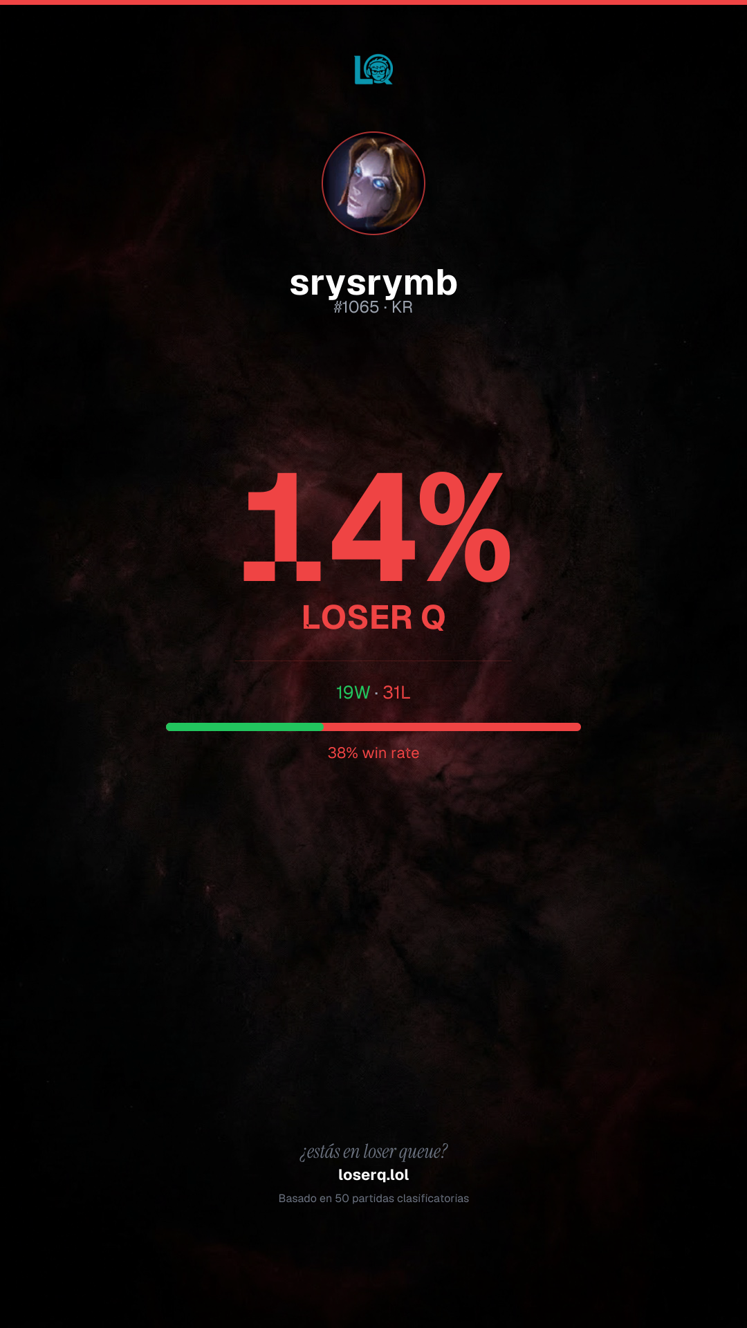 19 victorias, 31 derrotas — 38% de win rate. Ha sido una racha difícil.