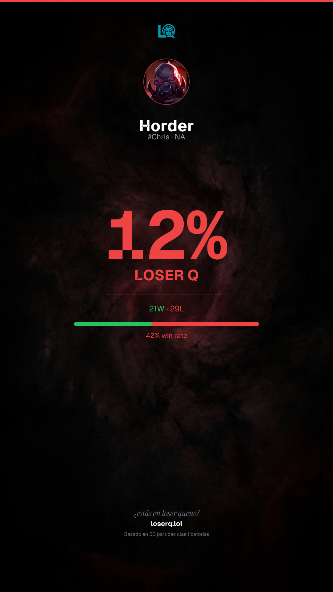 21 victorias, 29 derrotas — 42% de win rate. Ha sido una racha difícil.
