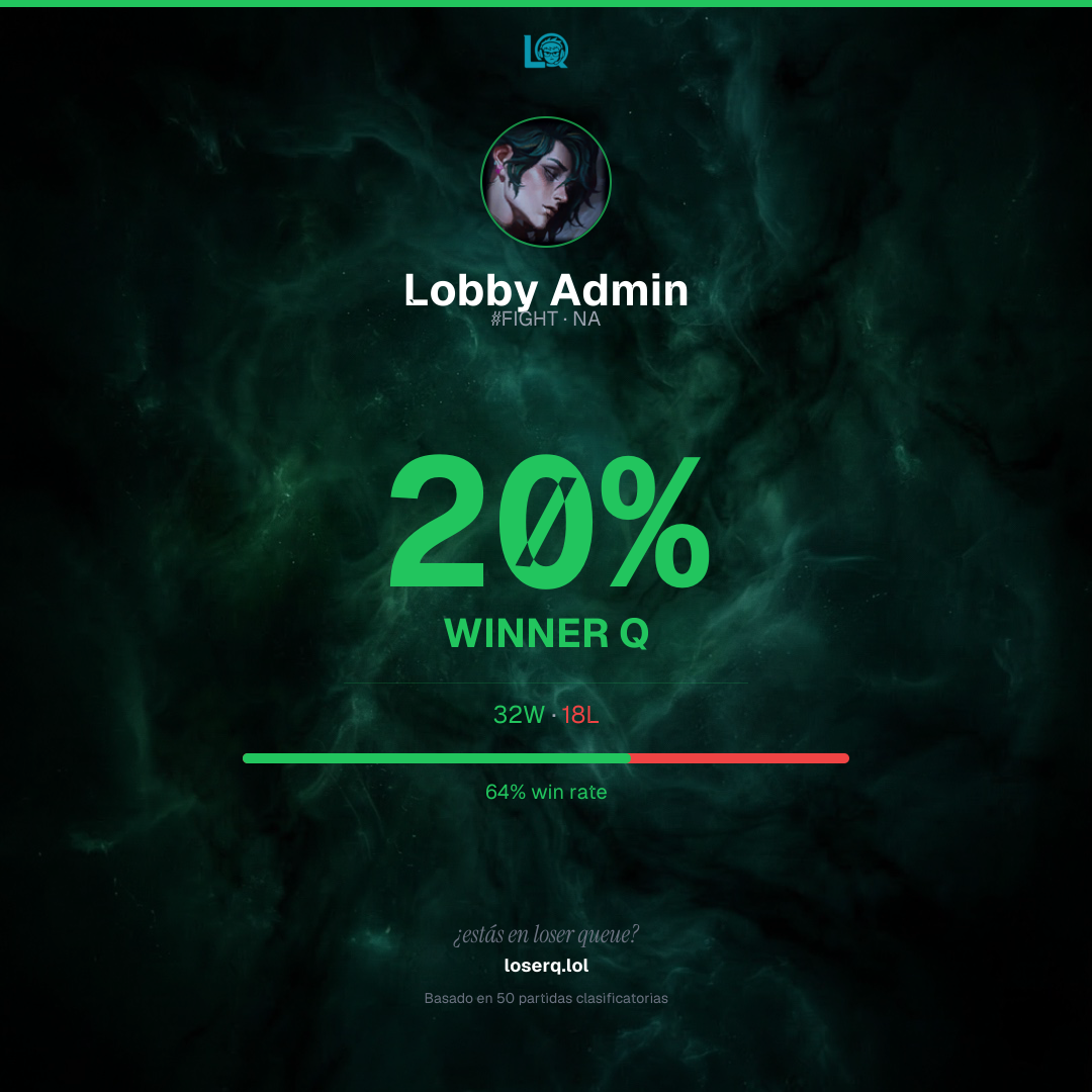 32 victorias, 18 derrotas — 64% de win rate. Un buen desempeño.