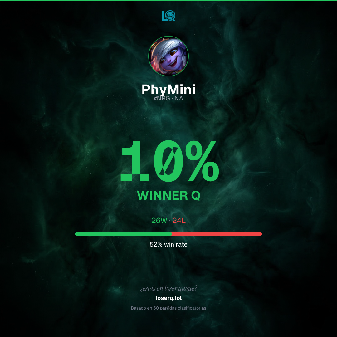 26 victorias, 24 derrotas — 52% de win rate.