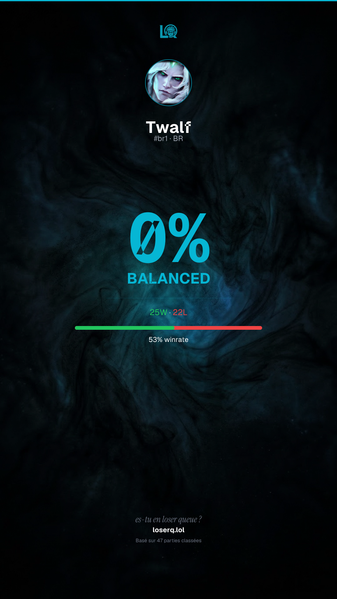 25 victoires, 22 défaites — un winrate de 53%.