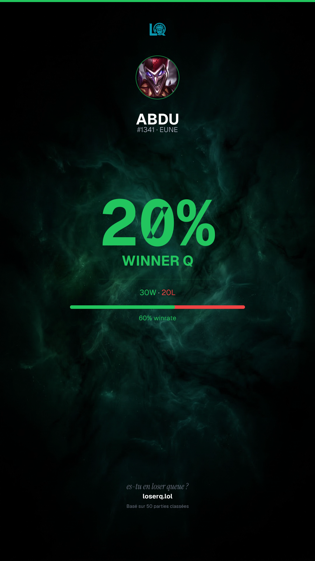 30 victoires, 20 défaites — un winrate de 60%. Belle performance.