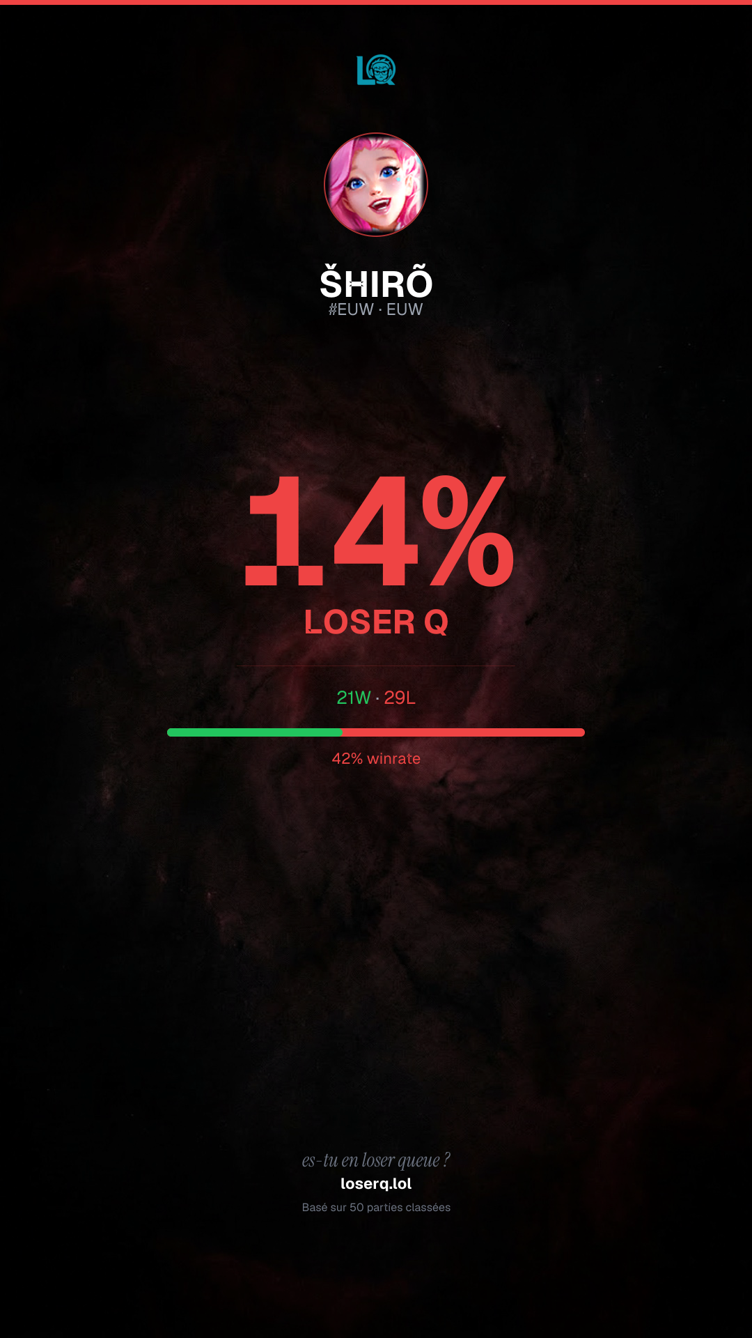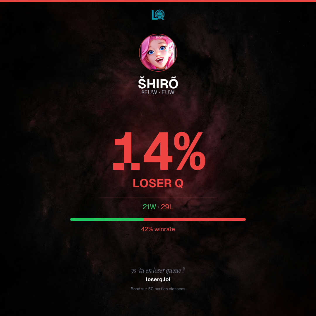 21 victoires, 29 défaites — un winrate de 42%. Une période difficile.