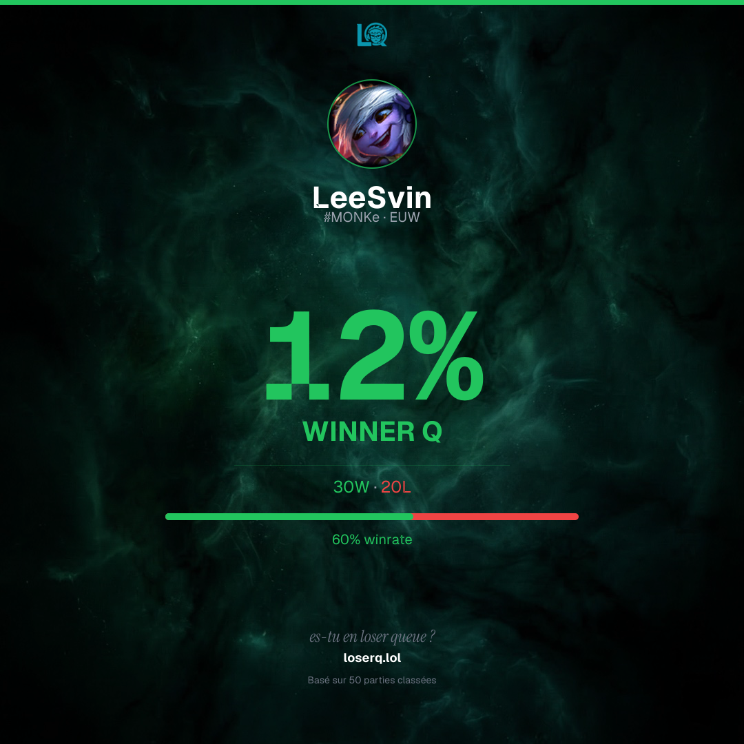 30 victoires, 20 défaites — un winrate de 60%. Belle performance.