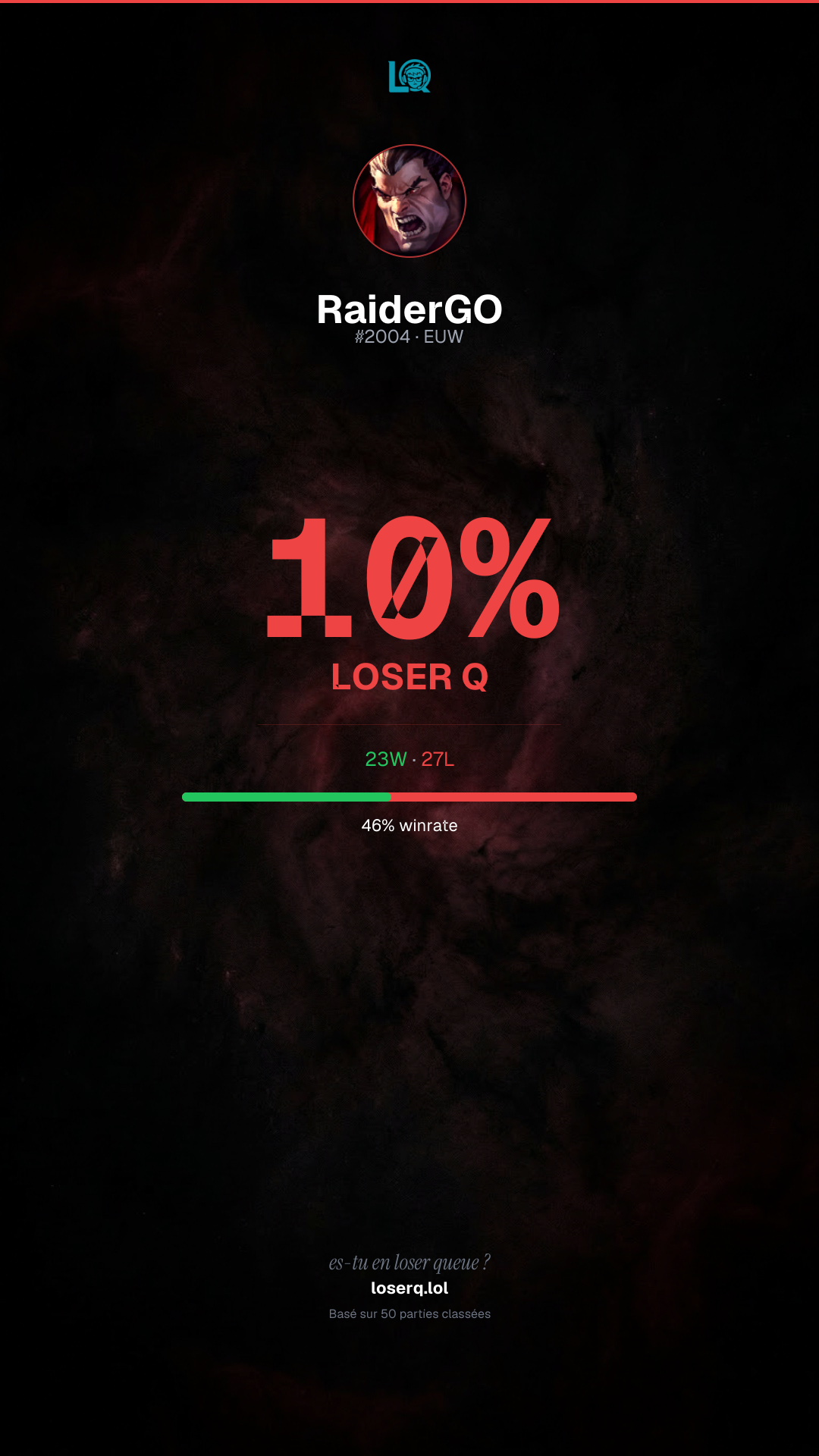 Tu es à 10% en Loser Q — défie tes potes de faire le test
