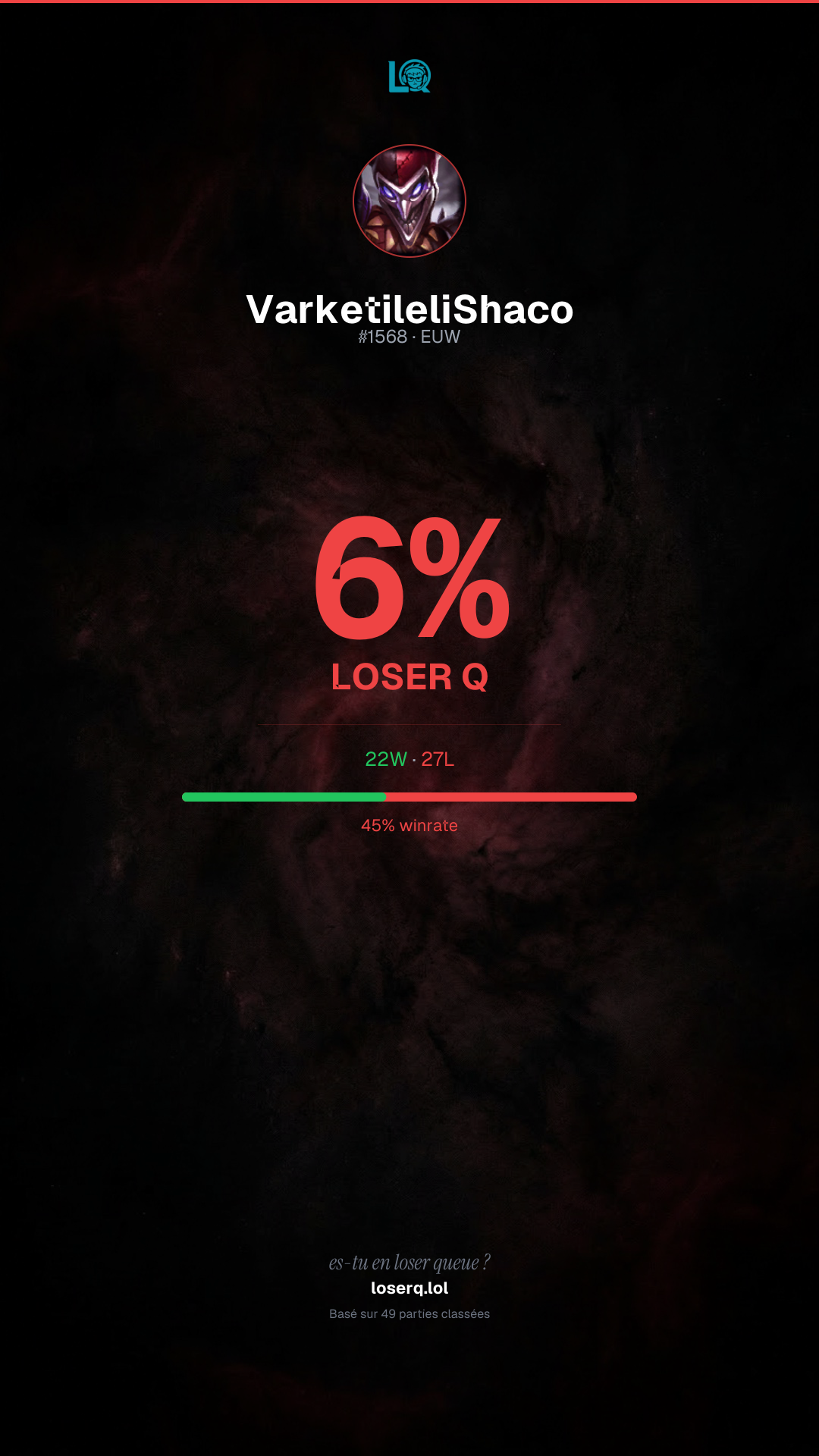 Tu es à 6% en Loser Q — défie tes potes de faire le test