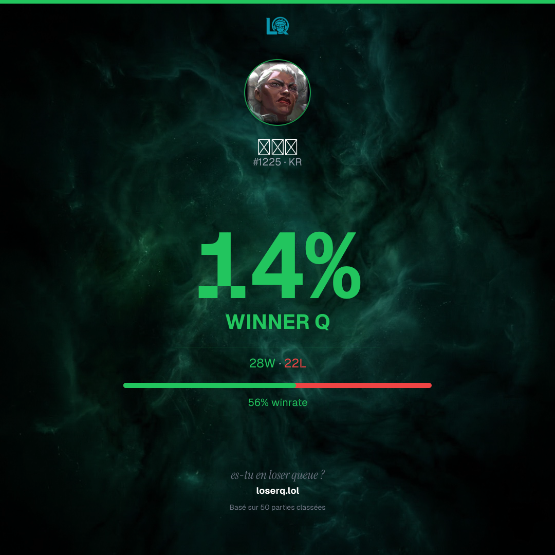 28 victoires, 22 défaites — un winrate de 56%. Belle performance.