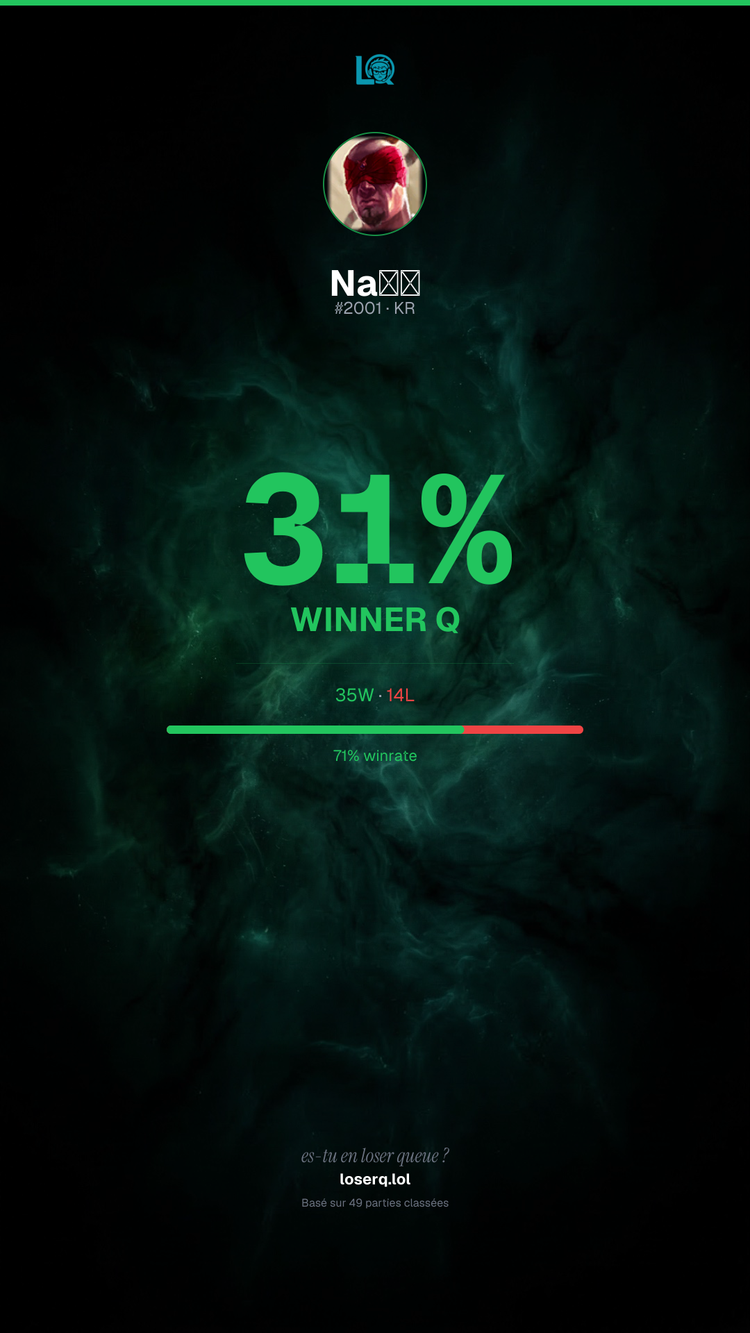 33 victoires, 16 défaites — un winrate de 67%. Belle performance.
