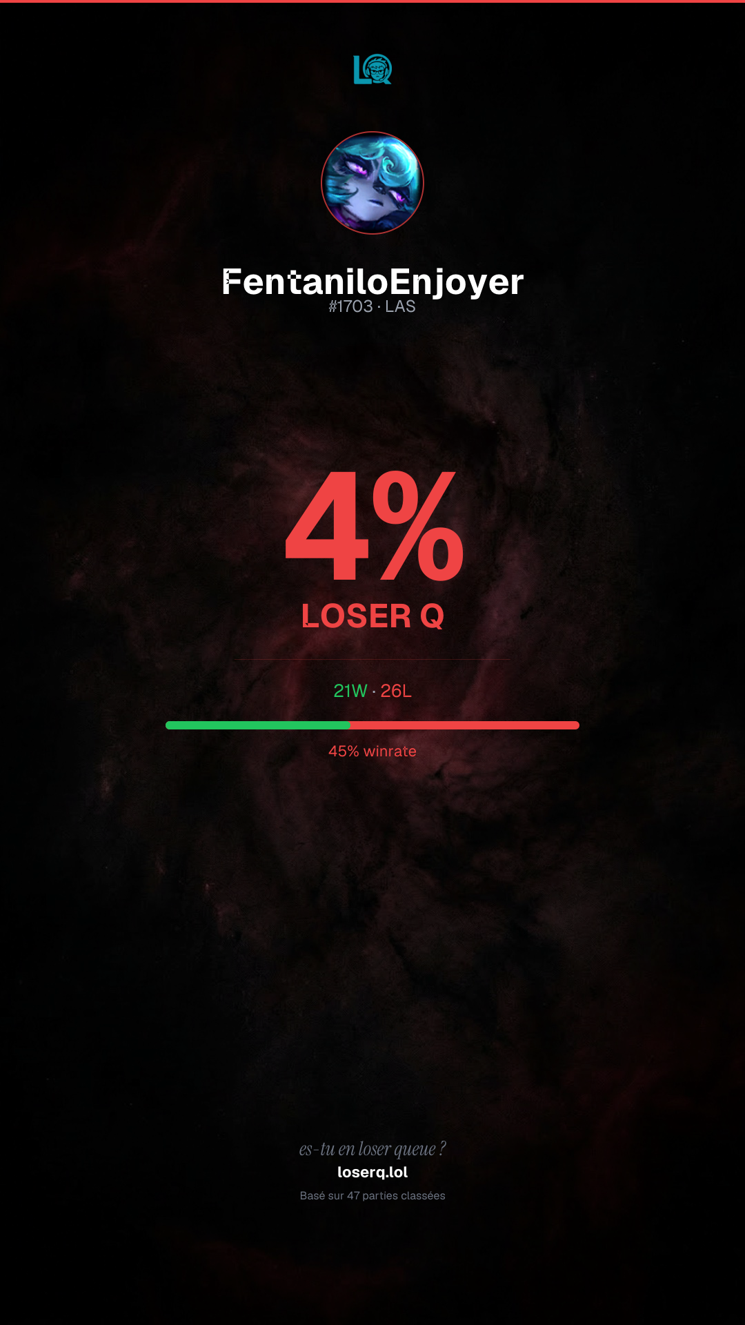 Tu es à 4% en Loser Q — défie tes potes de faire le test