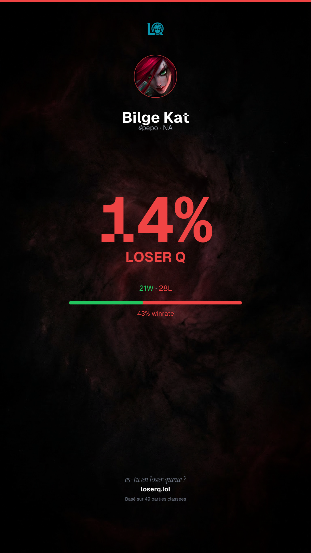 21 victoires, 28 défaites — un winrate de 42%. Une période difficile.
