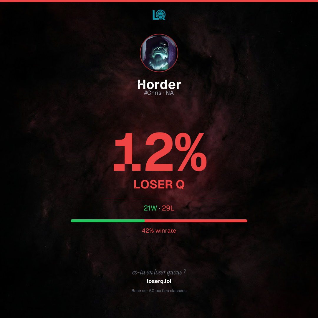 21 victoires, 29 défaites — un winrate de 42%. Une période difficile.