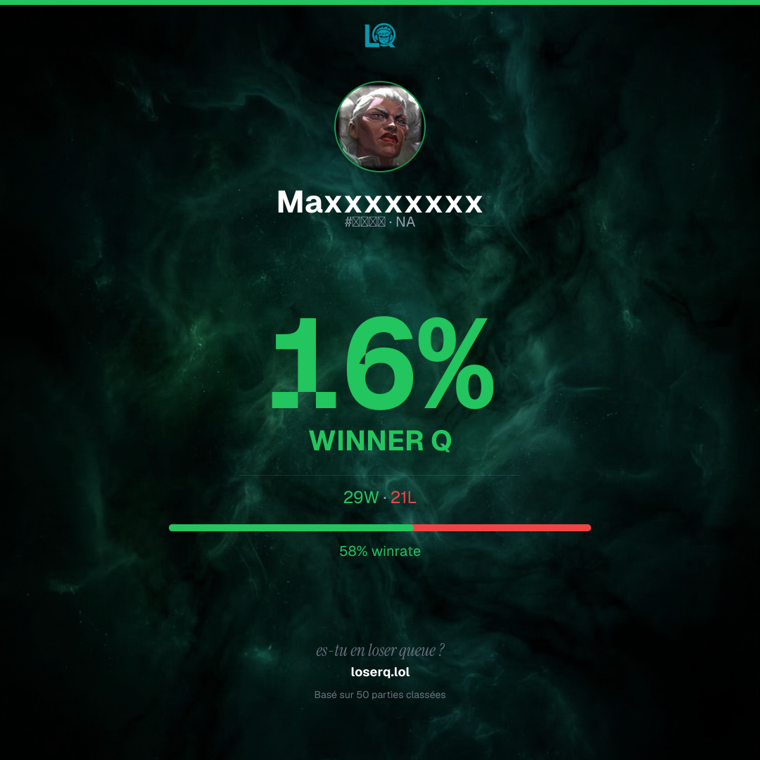 29 victoires, 21 défaites — un winrate de 58%. Belle performance.