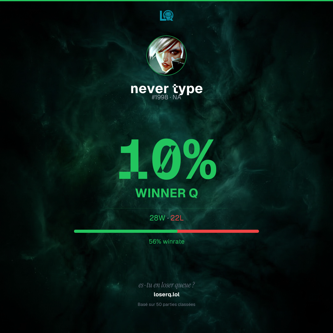28 victoires, 22 défaites — un winrate de 56%. Belle performance.