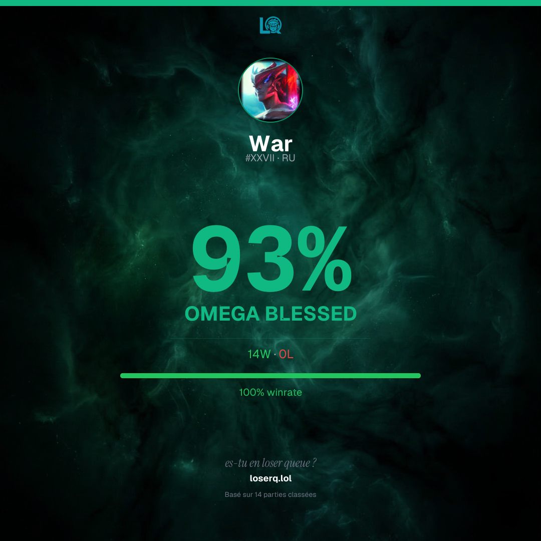 14 victoires, 0 défaites — un winrate de 100%. Belle performance.
