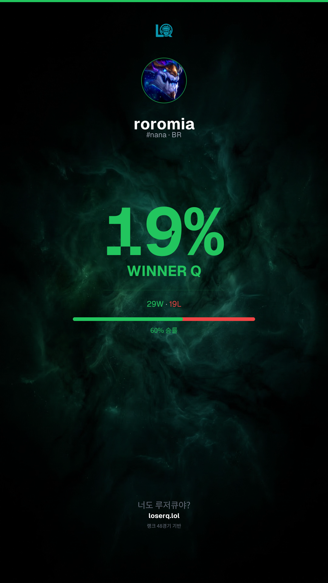 29승 19패 — 승률 60%. 좋은 성적이야.