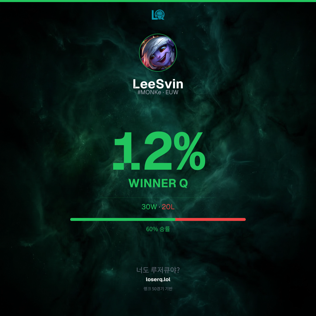 30승 20패 — 승률 60%. 좋은 성적이야.
