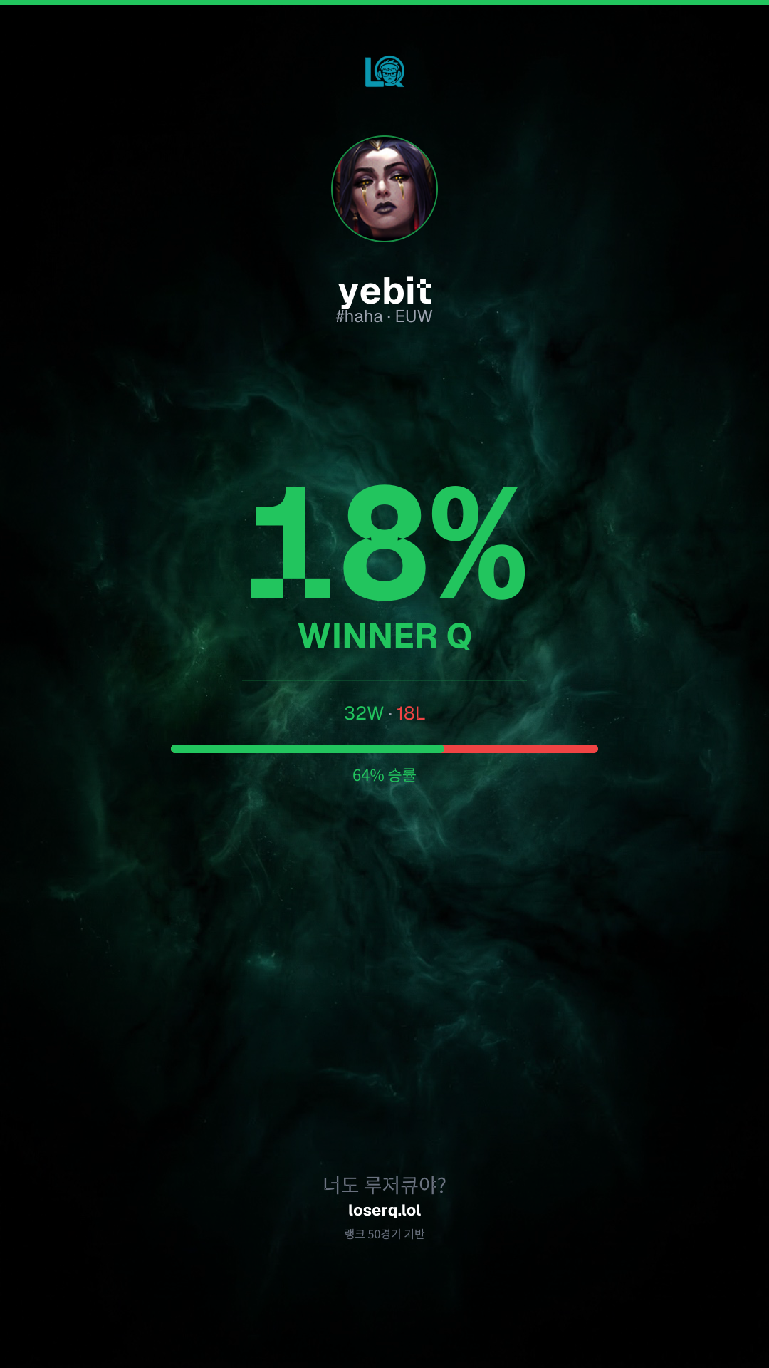 32승 18패 — 승률 64%. 좋은 성적이야.