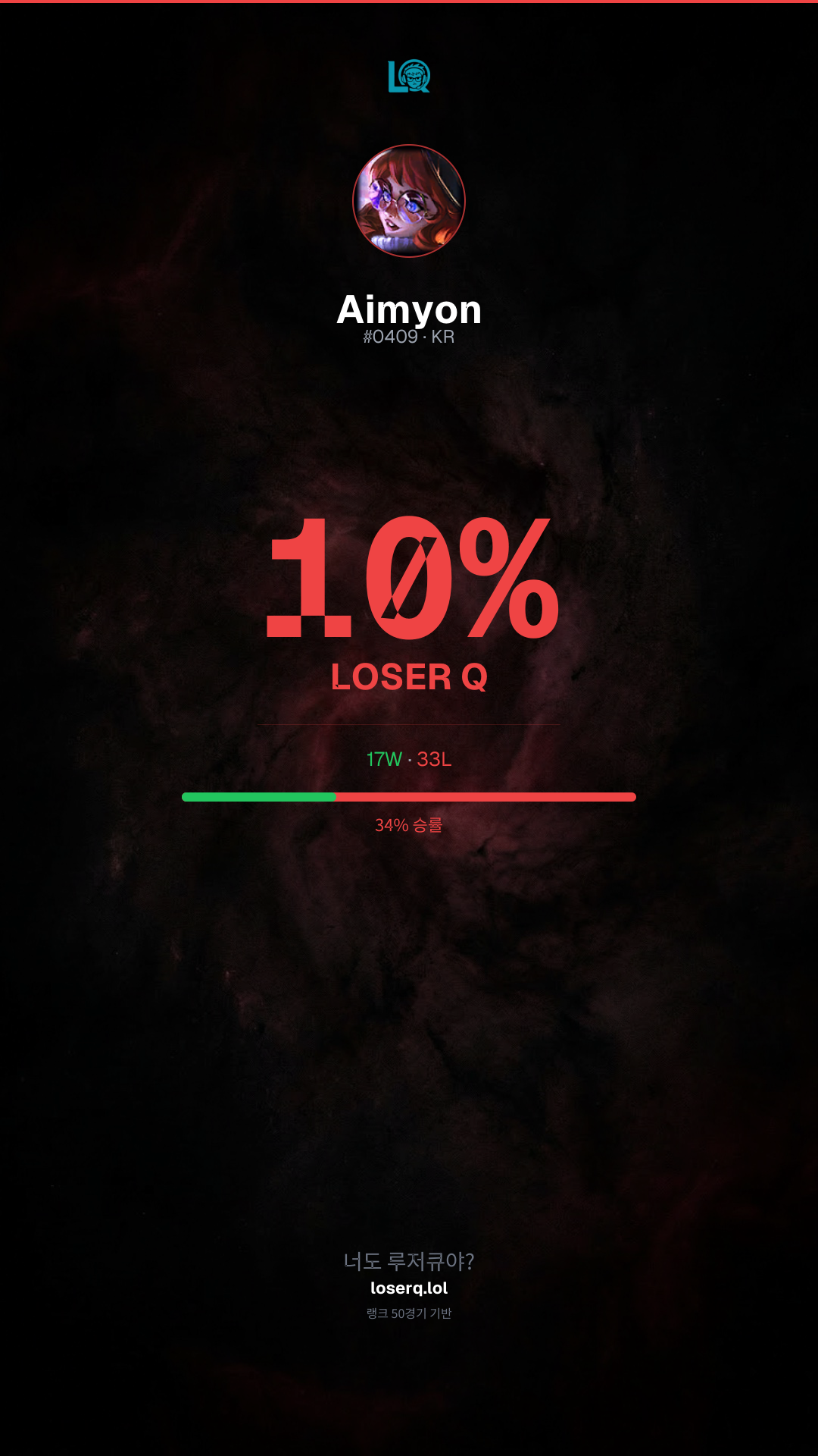 넌 10% 루저큐야 — 친구도 확인해 보라고 해