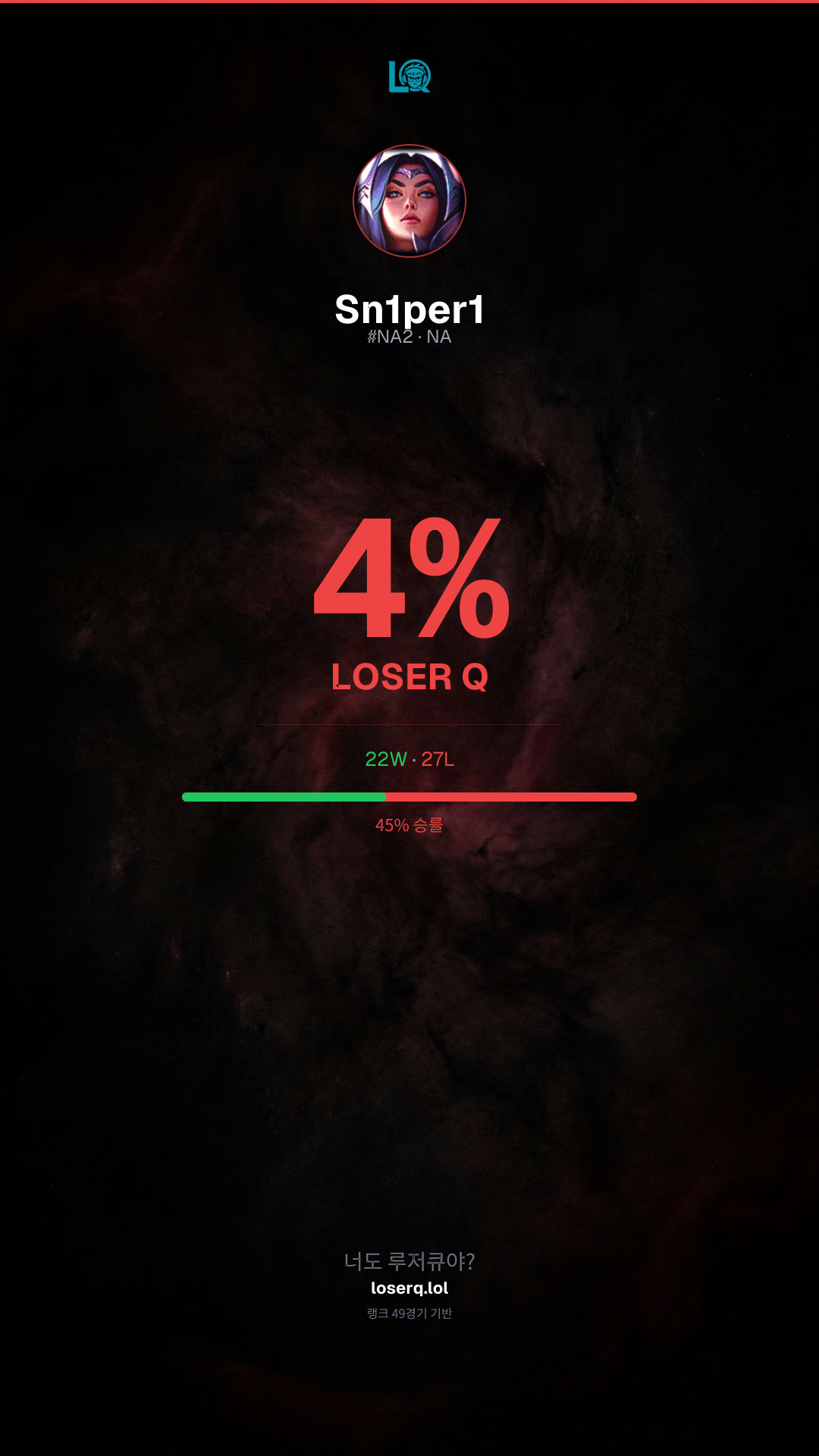 넌 4% 루저큐야 — 친구도 확인해 보라고 해