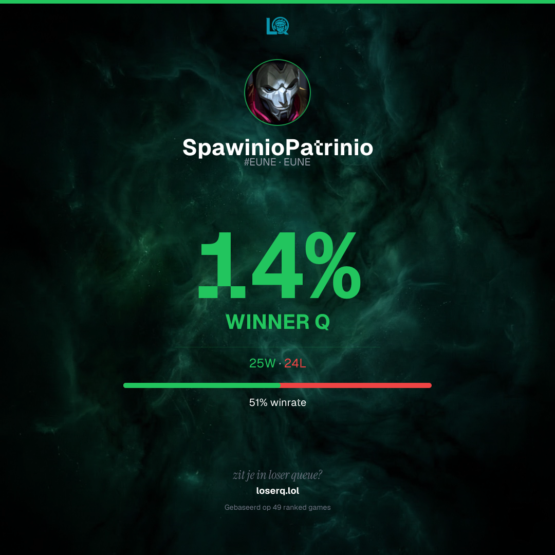 25 overwinningen, 24 nederlagen — een winrate van 51%.