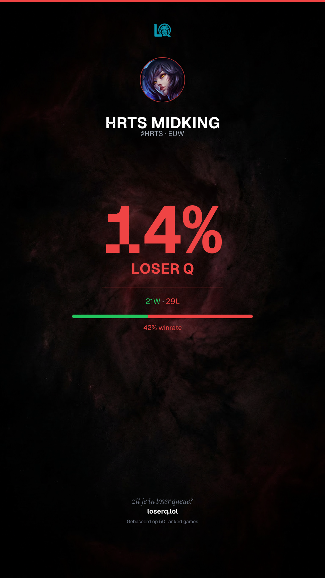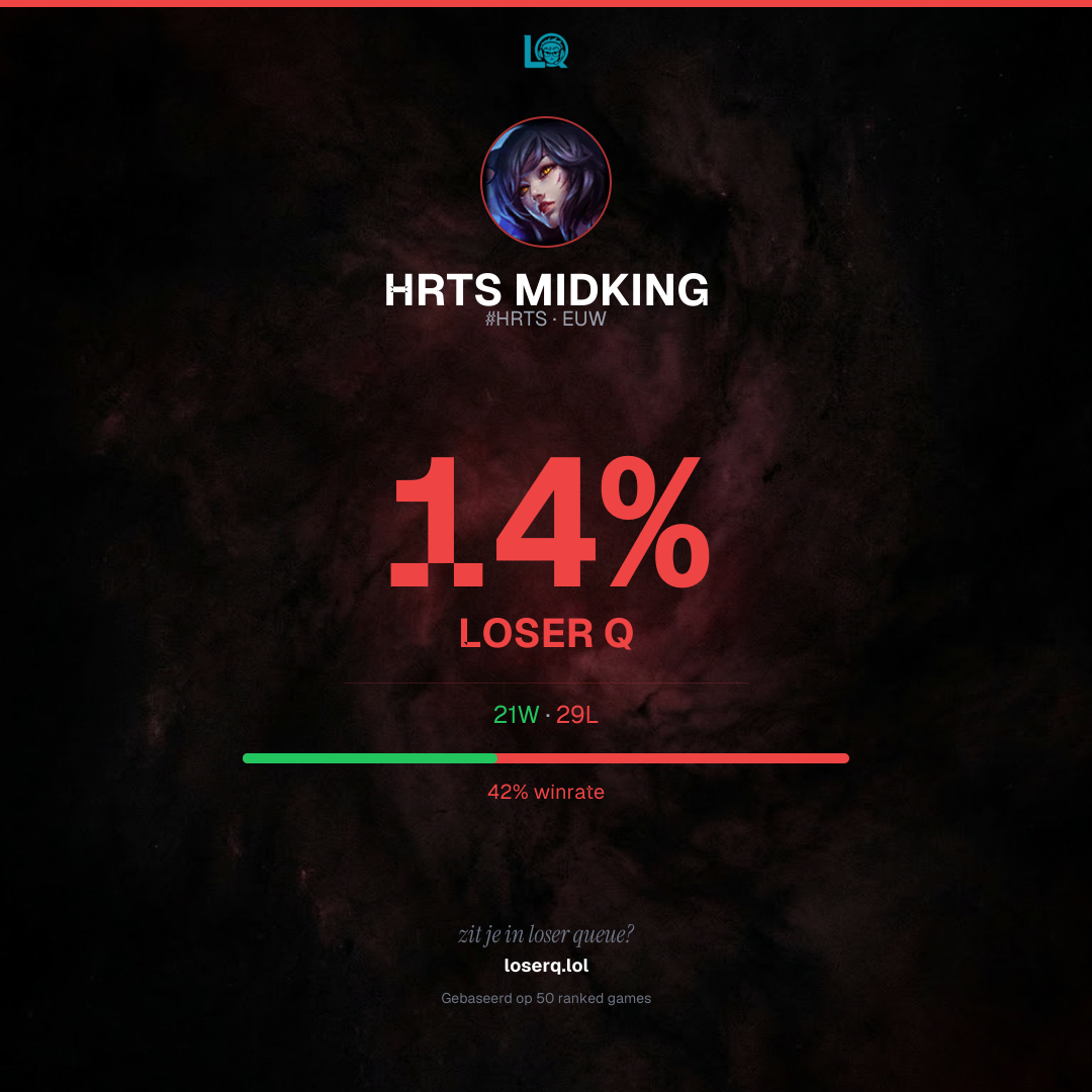 21 overwinningen, 29 nederlagen — een winrate van 42%. Een lastige periode.