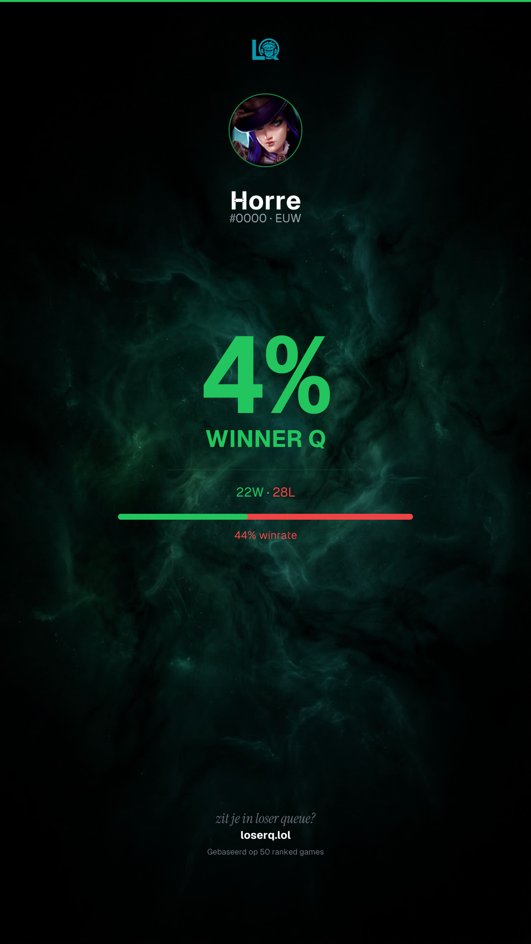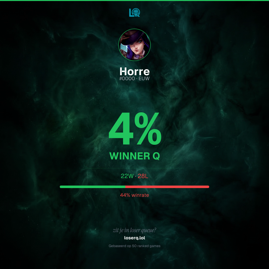 22 overwinningen, 28 nederlagen — een winrate van 44%. Een lastige periode.