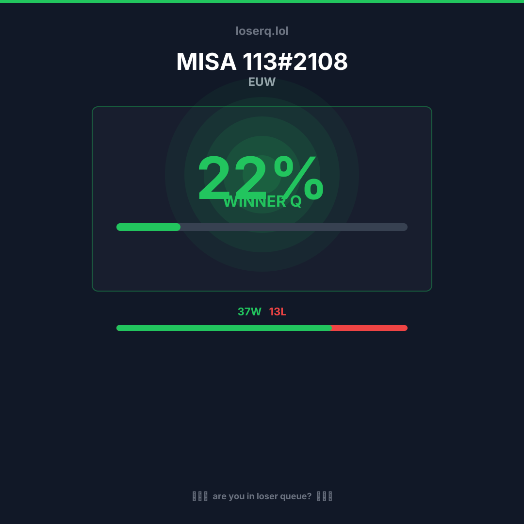 37 overwinningen, 13 nederlagen — een winrate van 74%. Sterke prestatie.