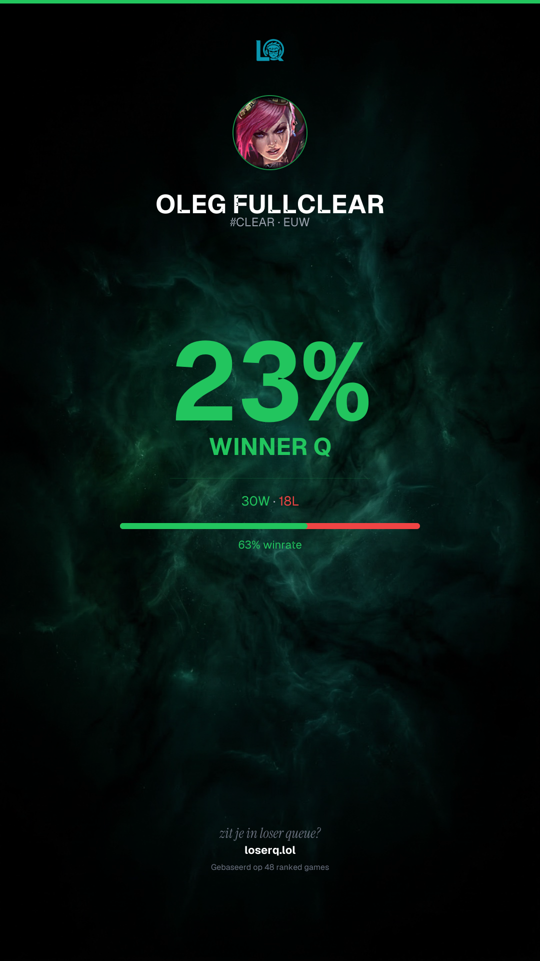30 overwinningen, 18 nederlagen — een winrate van 62%. Sterke prestatie.