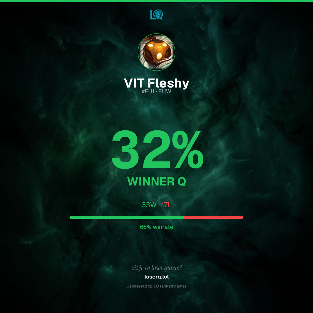 33 overwinningen, 17 nederlagen — een winrate van 66%. Sterke prestatie.