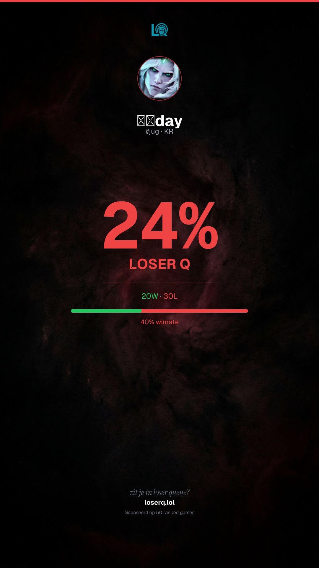 20 overwinningen, 30 nederlagen — een winrate van 40%. Een lastige periode.