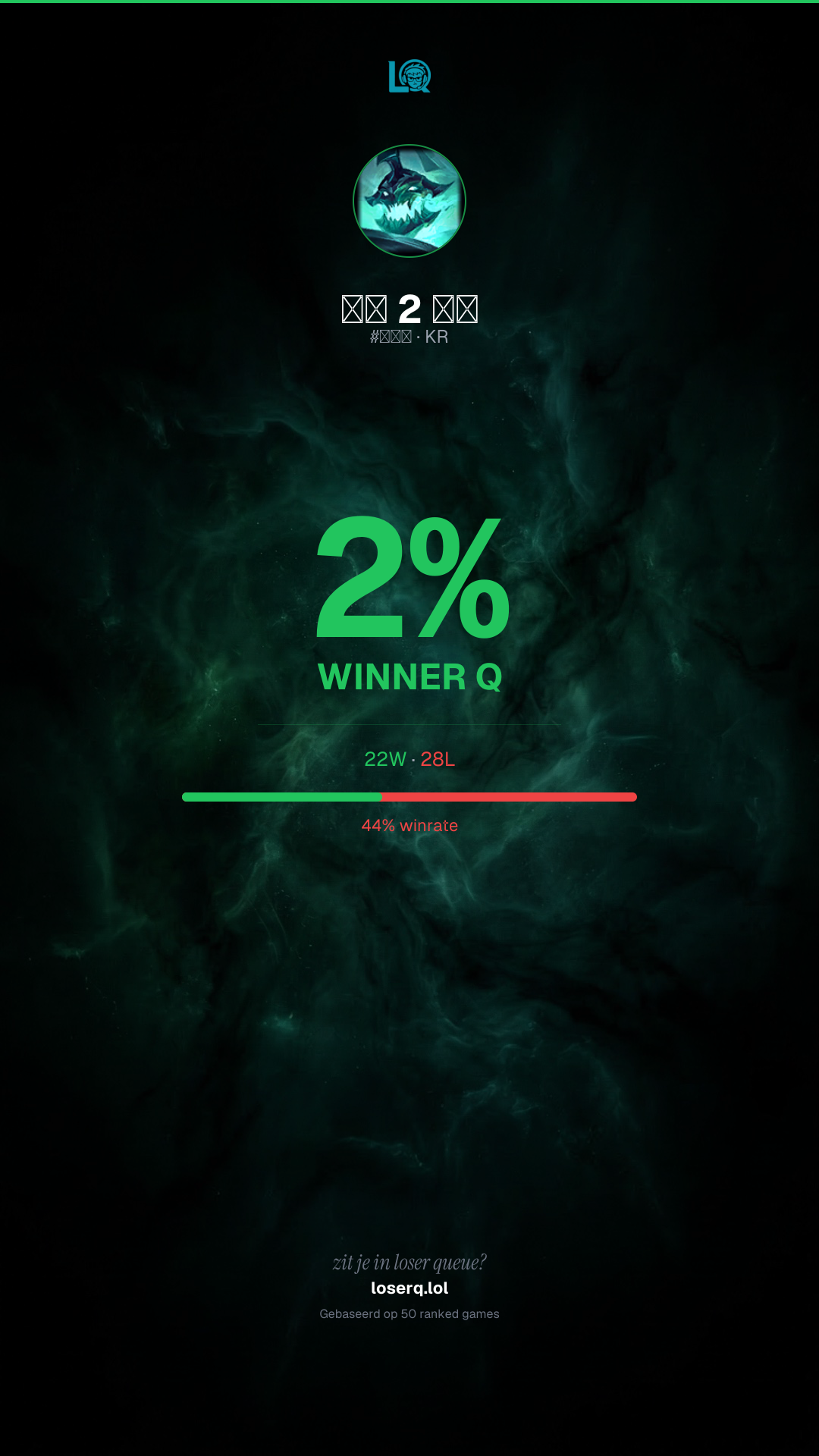 22 overwinningen, 28 nederlagen — een winrate van 44%. Een lastige periode.