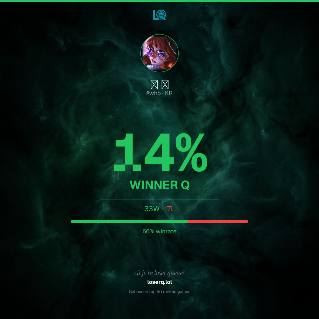 33 overwinningen, 17 nederlagen — een winrate van 66%. Sterke prestatie.