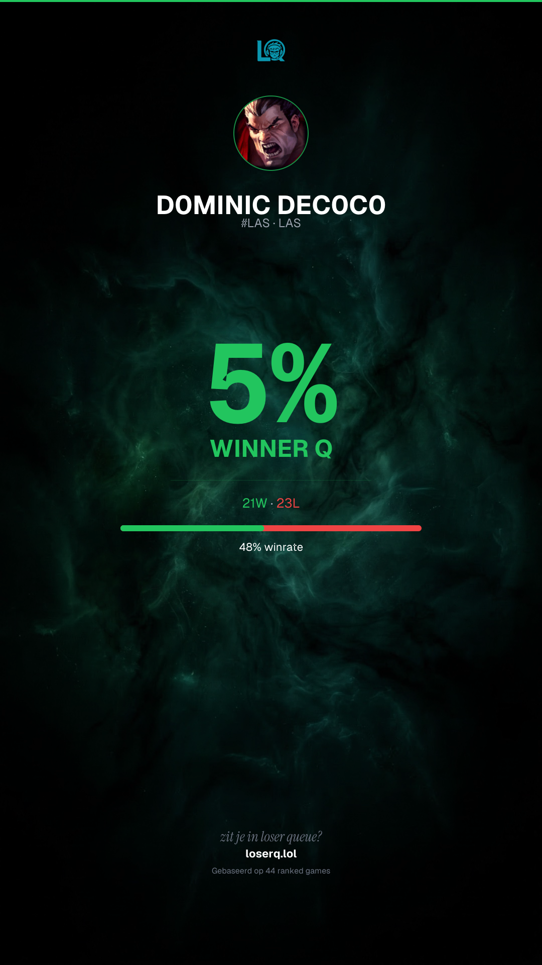 21 overwinningen, 23 nederlagen — een winrate van 47%.