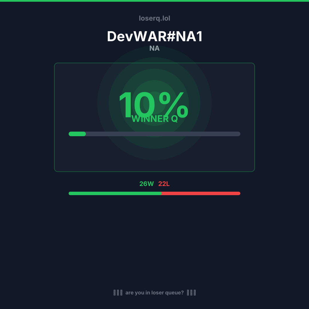 26 overwinningen, 22 nederlagen — een winrate van 54%.
