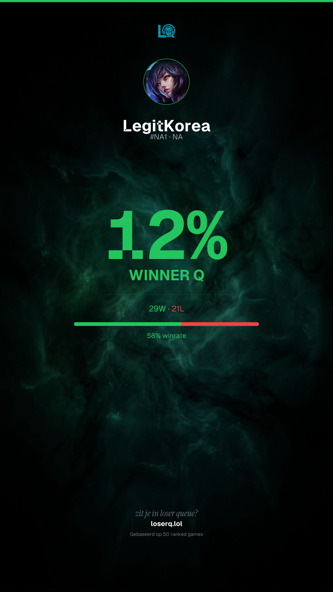 29 overwinningen, 21 nederlagen — een winrate van 58%. Sterke prestatie.