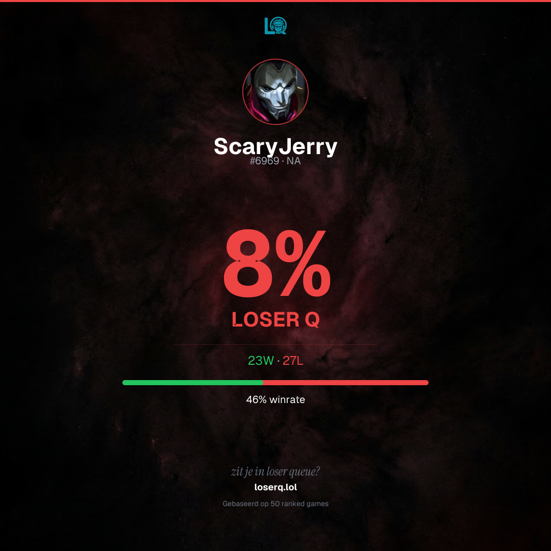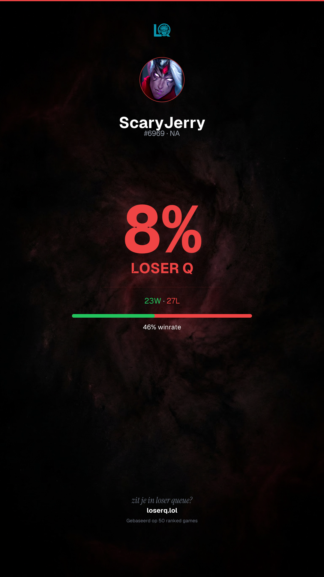 23 overwinningen, 27 nederlagen — een winrate van 46%.