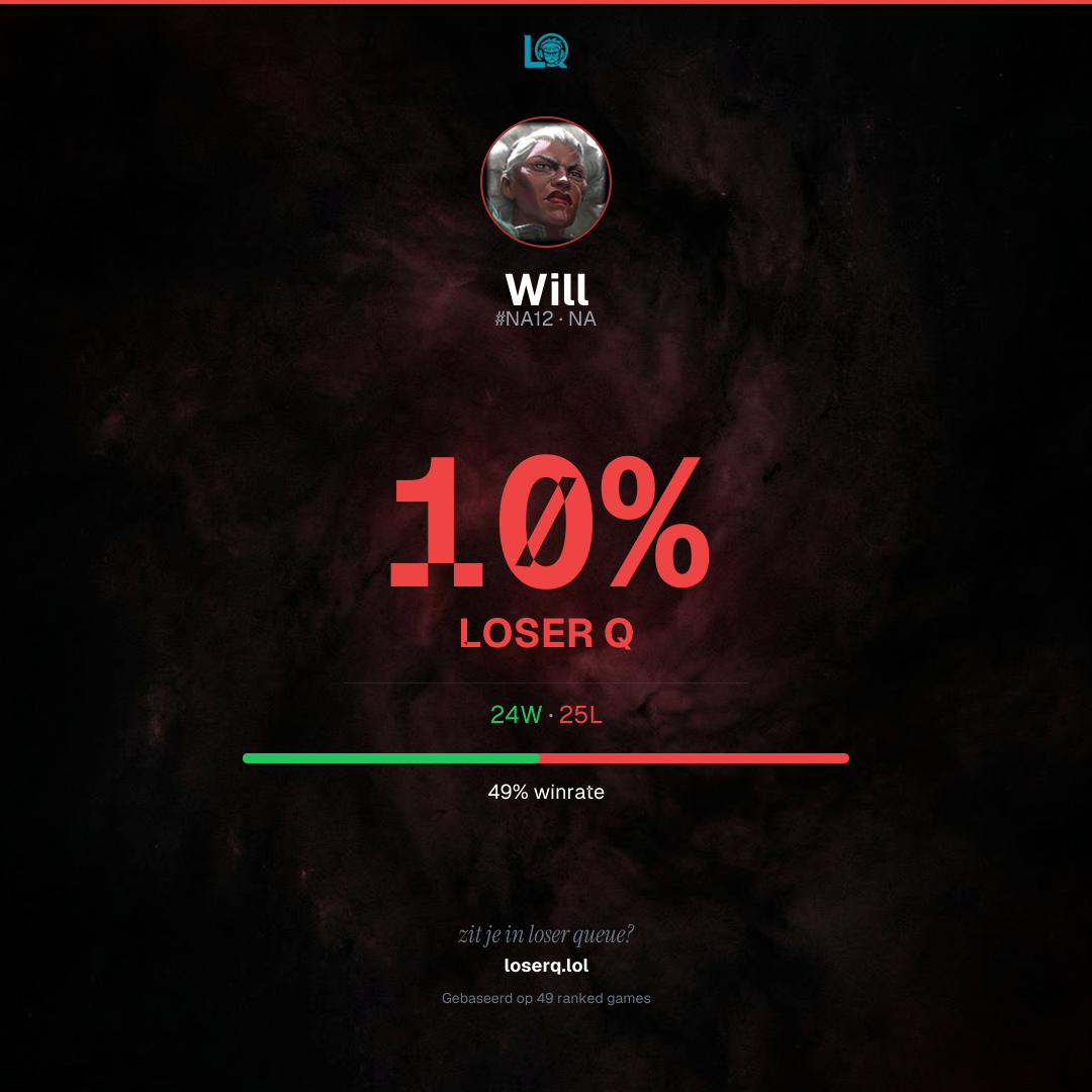24 overwinningen, 25 nederlagen — een winrate van 48%.