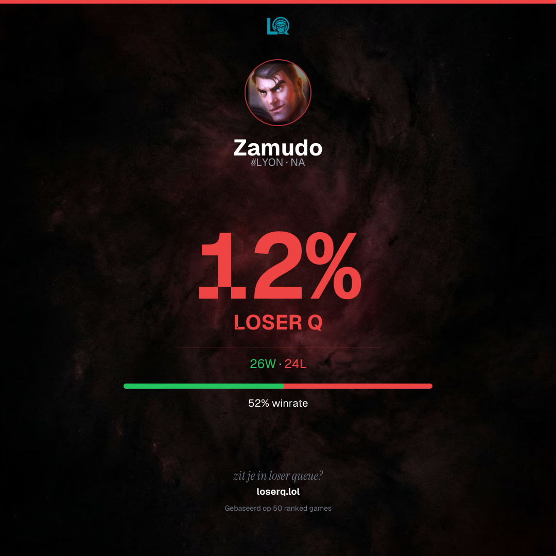 26 overwinningen, 24 nederlagen — een winrate van 52%.