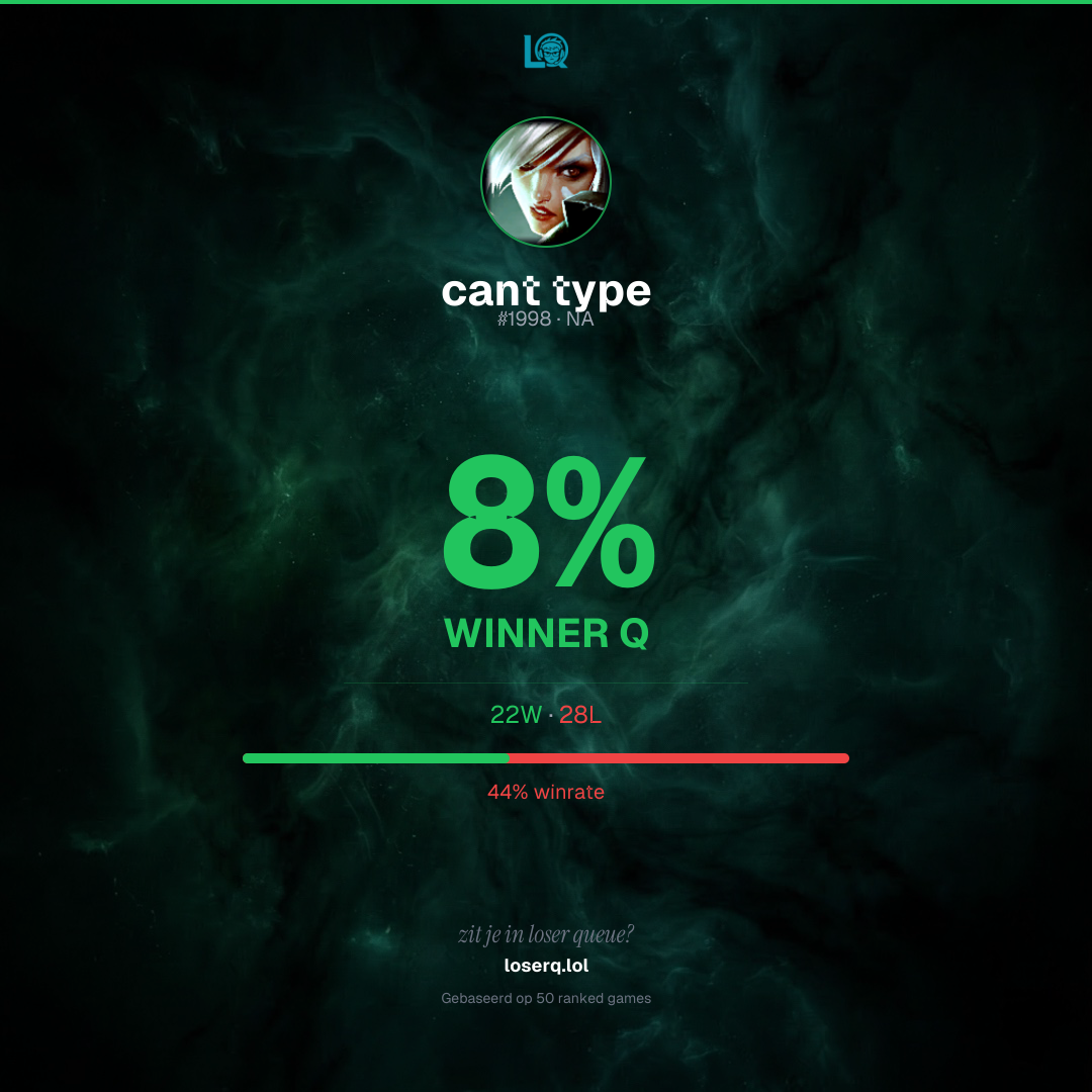 22 overwinningen, 28 nederlagen — een winrate van 44%. Een lastige periode.
