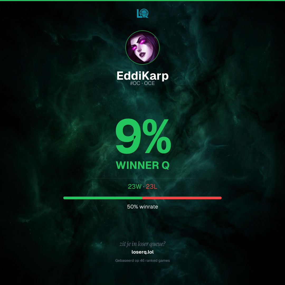 23 overwinningen, 23 nederlagen — een winrate van 50%.