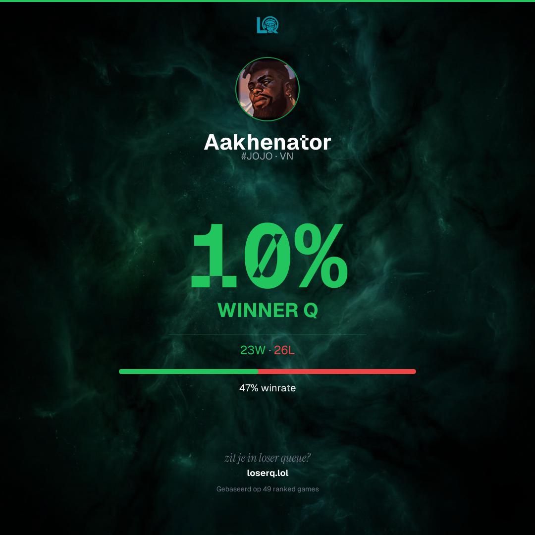 23 overwinningen, 26 nederlagen — een winrate van 46%.