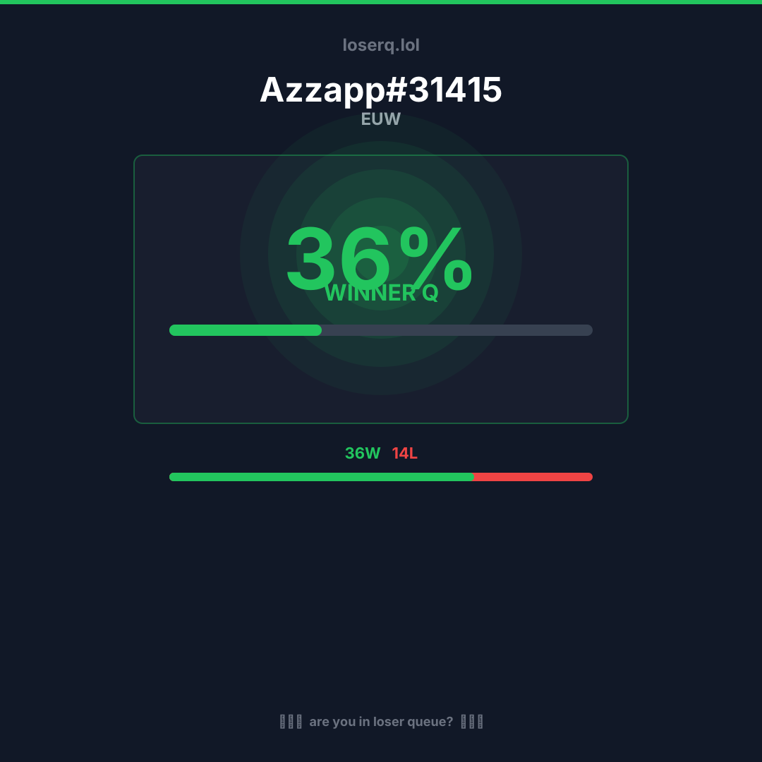 36 zwycięstw, 14 porażek — winrate 72%. Mocny wynik.