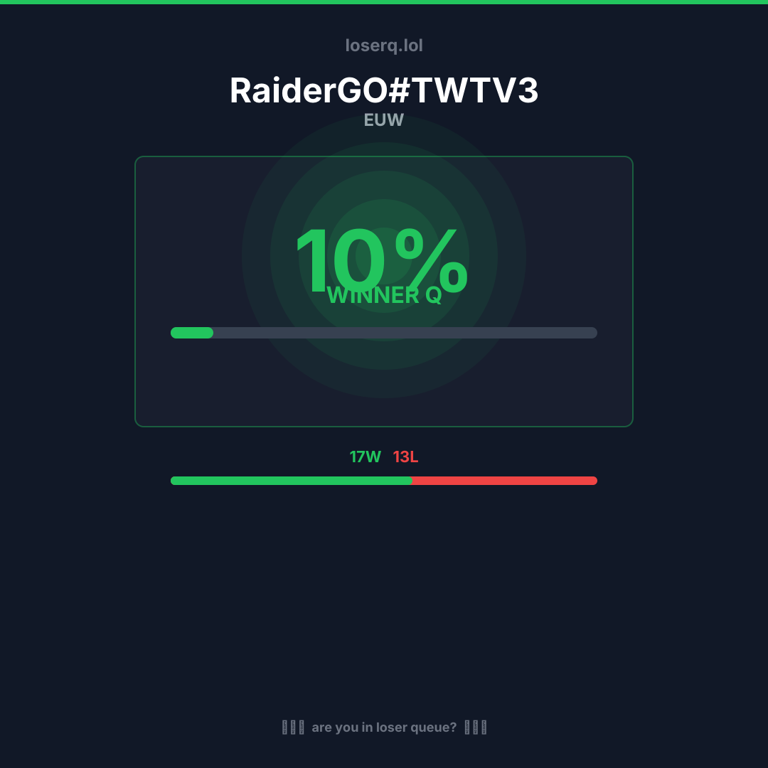 17 zwycięstw, 13 porażek — winrate 56%. Mocny wynik.