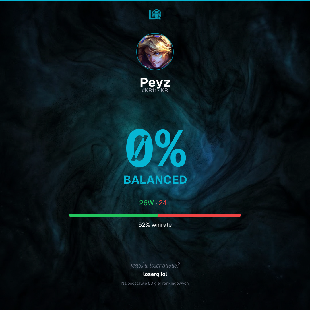 26 zwycięstw, 24 porażek — winrate 52%.