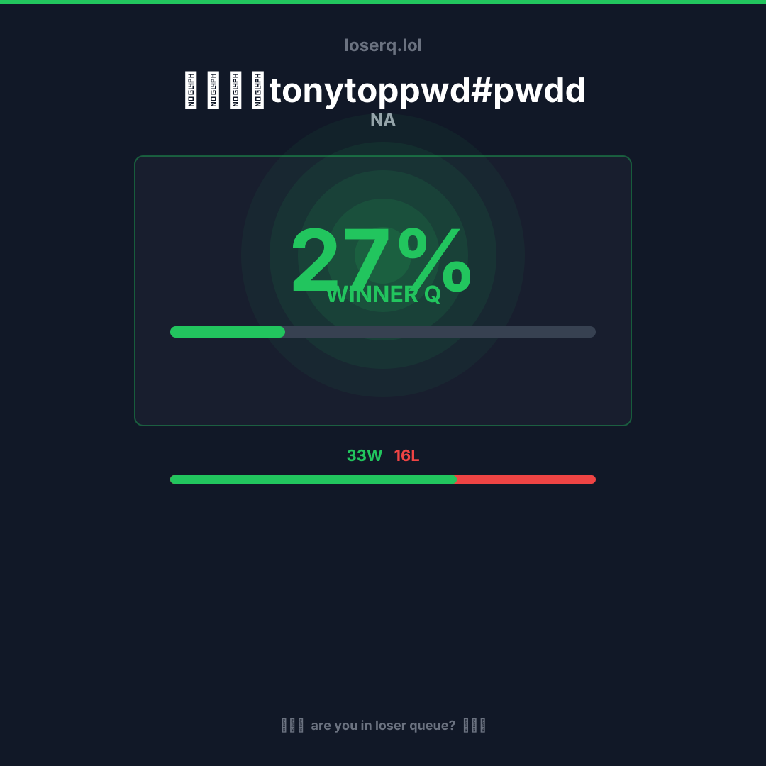 33 zwycięstw, 16 porażek — winrate 67%. Mocny wynik.
