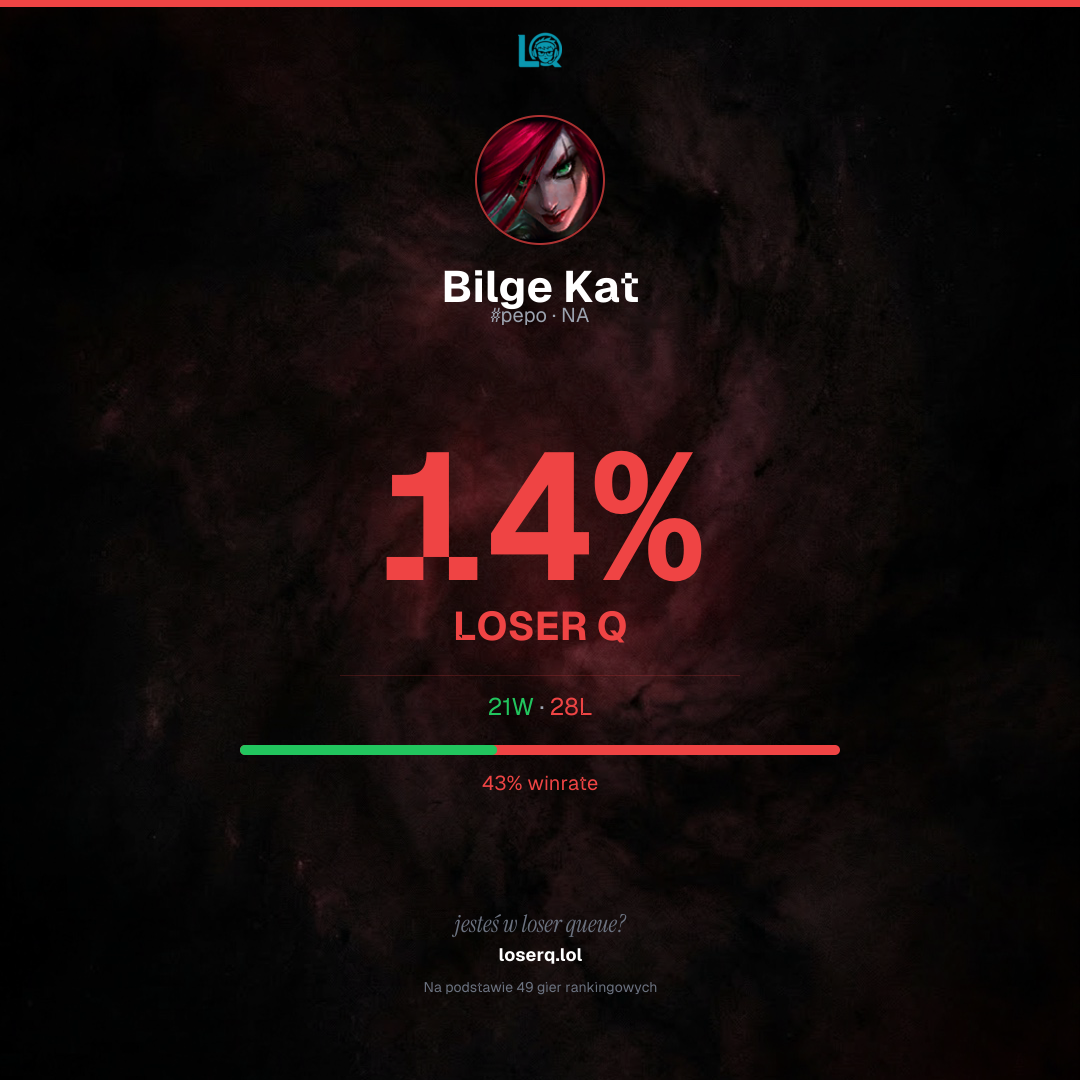 21 zwycięstw, 28 porażek — winrate 42%. Ciężki okres.