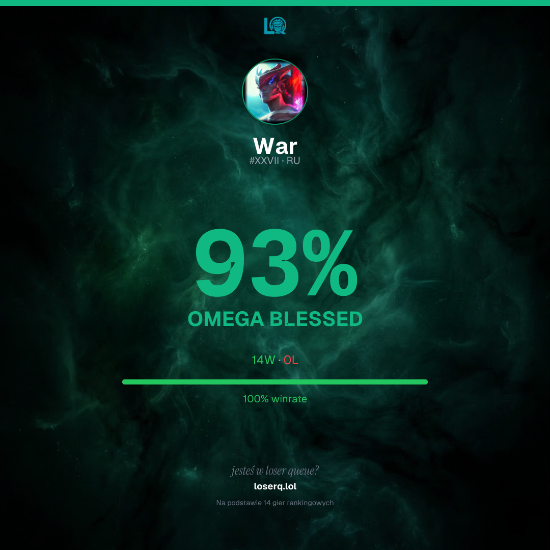 14 zwycięstw, 0 porażek — winrate 100%. Mocny wynik.