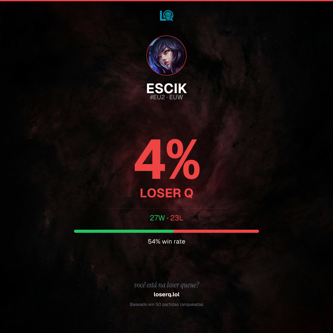 Você está 4% na Loser Q — desafia seus amigos a conferir